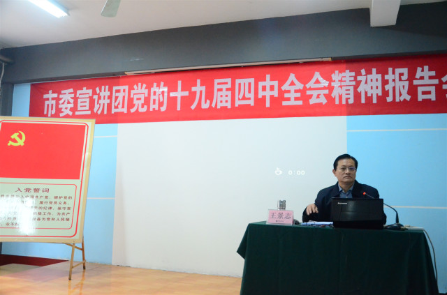 導讀:11月30日,市委宣講團成員,市生態(tài)環(huán)境局黨組成員、副局長王景志來到公司,為黨員代表和骨干管理者代表宣講了黨的十九屆四中全會精神。