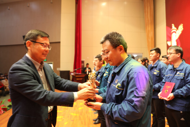 1月4日,公司在持續(xù)深化精益生產(chǎn)年度總結(jié)動員大會上,公司對獲得2019年度(第三屆)“華紡工匠”的5位員工進行了表彰,副總經(jīng)理盛守祥為他們頒發(fā)獎杯。