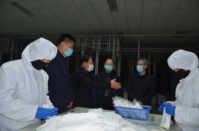 陪同參觀過程中,王力民簡要介紹了公司在疫情防控方面所做的具體工作,重點(diǎn)介紹了復(fù)工后的生產(chǎn)運(yùn)營、當(dāng)前口罩生產(chǎn)產(chǎn)能和新增清潔生產(chǎn)項(xiàng)目的進(jìn)展情況。張忠慶一邊仔細(xì)地察看生產(chǎn),一邊認(rèn)真聽取企業(yè)情況,對公司有序推進(jìn)生產(chǎn)經(jīng)營,特別是完善產(chǎn)業(yè)發(fā)展方面的舉措給予了充分肯定,并就企業(yè)運(yùn)行保障等方面的工作做了指導(dǎo)。