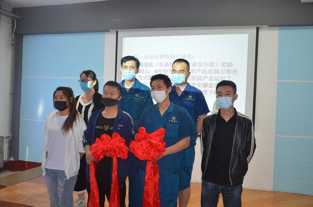 會上,車間對4月份競賽獎勵做了分配,A梯隊序列:第一名火焰戰(zhàn)隊(特整精益生產(chǎn)承包小組)118.42分,獎勵2500元;第二名烽火狼戰(zhàn)隊(340絲光精益生產(chǎn)承包小組)117.57分,獎勵1500元;第三名尖刀戰(zhàn)隊(320拉幅精益生產(chǎn)承包小組)112.08分,獎勵1000元;第四名精英戰(zhàn)隊(卷烘精益生產(chǎn)承包小組)104.02分,獎勵1000元;第五名烈火重生(360拉幅精益生產(chǎn)承包小組)102.05,獎勵1000元。B梯隊序列:電氣小組獎勵1500元,描稿小組獎勵1000元。4月份車間好員工信用度前十名:李建濤、李宜勇、王士波、馬蒙蒙、陳長興、王義明、劉曉斐、毛九濤、董路永、張乃順,每人獎勵100元;各戰(zhàn)隊戰(zhàn)斗力第一名:李海通、王士濤、池連國、韓濱峰、李洋、劉曉斐、靳希芝、聶永斌、楊猛、王偉、陳寶棟、管美艷,每人獎勵100元;改善提案(最多者):劉曉斐4項,潘運濤3項,肖澤周2項,每人獎勵100元。競賽特別貢獻獎的沖鋒戰(zhàn)隊(軋染精益生產(chǎn)承包小組),獎勵5000元;獵人戰(zhàn)隊(340退漿精益生產(chǎn)承包小組),獎勵4000元。精益生產(chǎn)維修與操作一體化小組啟動工作方案,在會上公布并正式啟動。