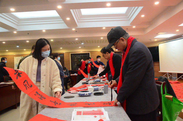 活動中,市總工會黨組成員、副主席戴新生為到場的企業(yè)職工和勞模代表,分發(fā)了現(xiàn)場書寫出的墨寶以及印制的春聯(lián),并向全市廣大企業(yè)職工送上新春祝福。