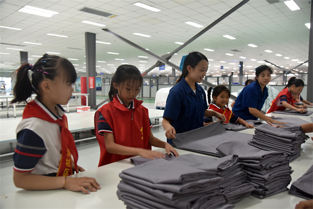 導讀:9月23日,濱城區(qū)玉龍湖小學四年級學生在老師帶領下走進公司,實地參觀了公司的生產車間以及部分展廳,現(xiàn)場體驗了家紡產品驗整及包裝等生產環(huán)節(jié),感受勞動的艱辛與快樂。