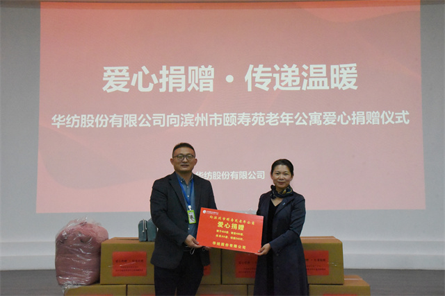 11月4日,公司舉行向濱州市頤壽苑老年公寓捐贈愛心物資的活動儀式。家紡分公司副總經(jīng)理曲偉華、濱州市頤壽苑老年公寓院長鄢桂珍等參加了捐贈儀式。