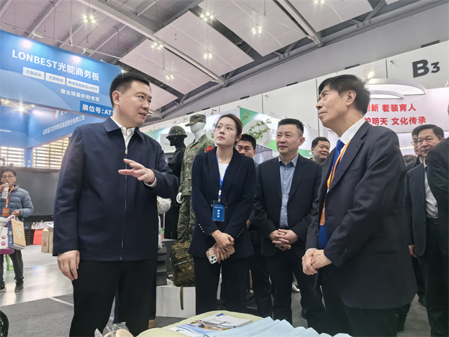 展會期間,教育部關心下一代工作委員會常務副主任王富,濱州市委常委、副市長屈躍寬等領導來到公司展位前參觀指導,詳細了解了產(chǎn)品的核心優(yōu)勢和應用價值。領導們對公司在教育紡織品領域的創(chuàng)新能力和技術優(yōu)勢給予了充分肯定,并對公司未來在教育領域的發(fā)展寄予厚望。