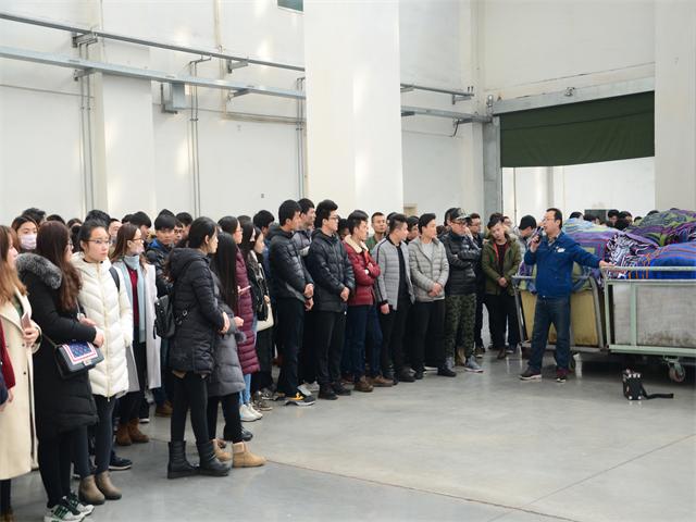 2月22日,濱州學(xué)院藝術(shù)學(xué)院黨總支副書記牛愛之、學(xué)生科科長秦玉國及240余名師生來到公司參觀交流,公司人力資源部、職工學(xué)院、團委等負(fù)責(zé)人,帶領(lǐng)師生們一行參觀了公司科技產(chǎn)業(yè)園的花二車間、制版中心、家紡成品車間等,并著重介紹了公司的發(fā)展?fàn)顩r和前景。參觀結(jié)束后,同學(xué)們紛紛表示對公司整潔的工作環(huán)境、智能化的生產(chǎn)現(xiàn)場印象深刻。帶隊老師表示,華紡的發(fā)展令人鼓舞,希望回校后組織有就業(yè)意向的學(xué)生來公司實習(xí)、就業(yè)。