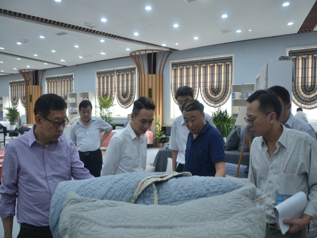 近日,美國(guó)某知名公司總經(jīng)理馮海帆、產(chǎn)品發(fā)展部經(jīng)理譚旭輝、產(chǎn)品銷售部經(jīng)理邵嘉琪一行來(lái)公司參觀考察。公司董事長(zhǎng)王力民陪同客人參觀了花布二車間、花布制版、家紡展廳、智能立體化倉(cāng)庫(kù)、工程技術(shù)研究院、創(chuàng)意中心等處。